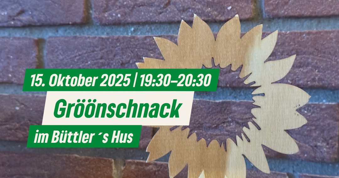 Vor den Herbstferien laden wir noch einmal zum Gröönschnack im Büttler´s Hus ein. Einmal im Monat sitzen wir in gemütlicher Runde zusammen und reden über Dorfthemen, Politik und das tägliche Leben. Komm gerne dazu!