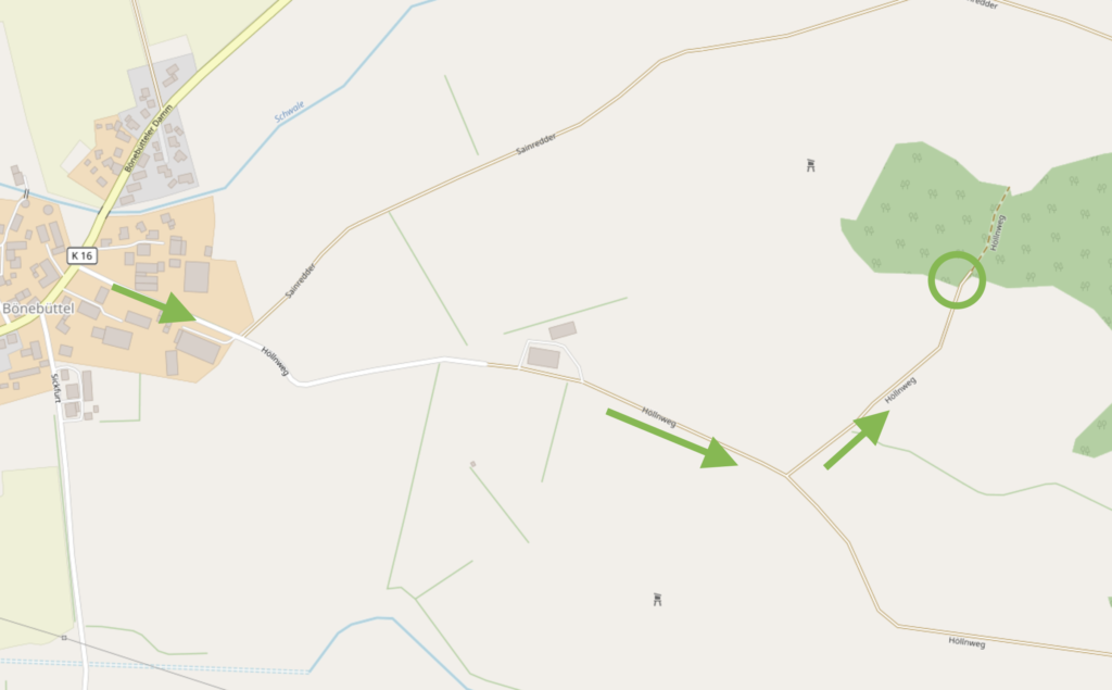 Wo wir uns treffen? Du fährst den Höllnweg mit dem Fahrrad einfach bis zur markierten Stelle. Wichtig: Vor Ort gibt es keine Parkplätze für Autos, dafür umso mehr für Fahrräder 🙂